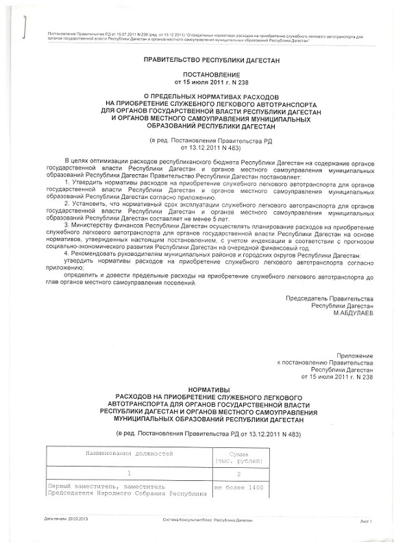 По данным РИА «Дербент», в конце 2014 года уже была приобретена автомашина для главы городского округа «город Дербент» — также Тойота Камри, но за сумму в 1 200 000рублей.