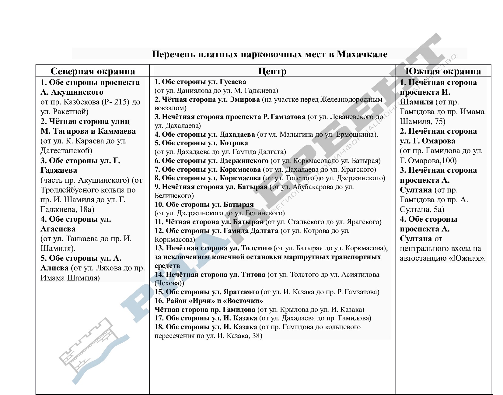 В один день с подписанием концессионного соглашения махачкалинская мэрия обнародовала обновленный перечень мест, где будут находиться платные парковочные места.