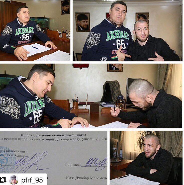 Известный российский боец Джабар Аскеров заключил контракт с бойцовским клубом «Ахмат» из Грозного. 17 ноября спортсмен подписал соглашение с президентом Федерации кикбоксинга ЧР Мохмад-Эми Ахмадовым. Об этом в разговоре с РИА «Дербент» рассказал сам спортсмен.