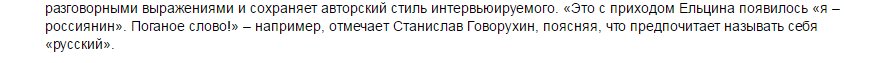 Оставим в стороне откровенных шовинистов, не знающих историю. Но неужели об этом не знает и Говорухин? Сложно судить об этом, особенно после его высказывания о том, что «россияне» даже чисто лингвистически отвратительно звучит.