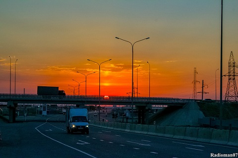 Долго не думая, сел и поехал:) По пути сопровождал нас яркий закат…