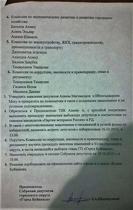 На 16 октября, в час дня была запланирована сессия депутатов Буйнакского городского собрания (см. скрин документа). По данным РИА «Дербент», намечалась встреча с жителями города для обсуждения коммунальных проблем. Были заявки от жителей разных микрорайонов — об отсутствии воды, тепла.