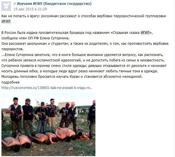 В паблике «Изучаем ИГИЛ — бандитское государство» публиковали и посты, в которых выражалась позиция представителей традиционного ислама в отношении ИГИЛ,