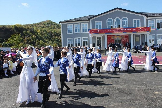 Торжественная церемония открытия школы, точнее современного школьного комплекса в селе Цмур была показана по федеральным каналам.