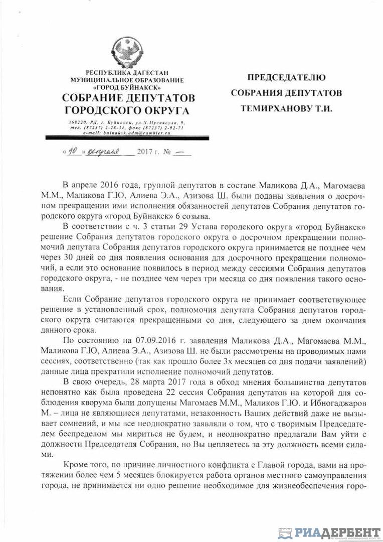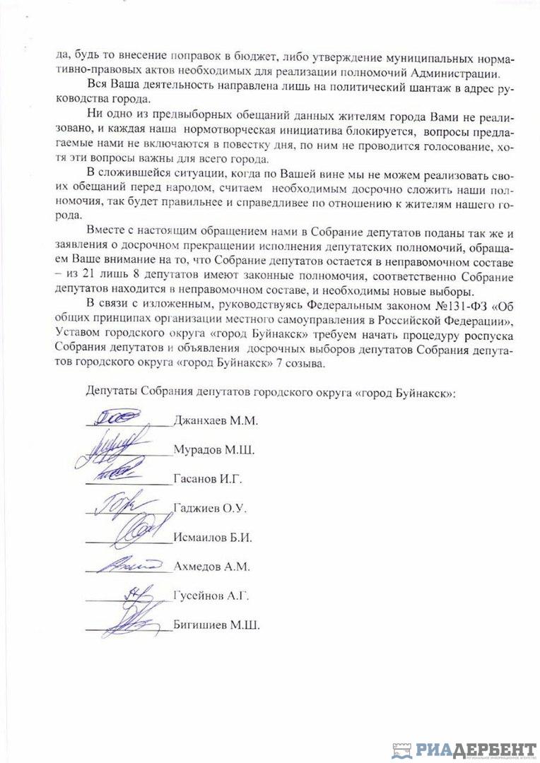 Восемь парламентариев Городского собрания Буйнакска сложили с себя полномочия депутатов. Об этом РИА «Дербент» сообщил председатель комиссии Горсобрания по бюджету, налогам и сборам Марат Джанхаев. Заявления об этом были поданы в понедельник, 10 апреля.