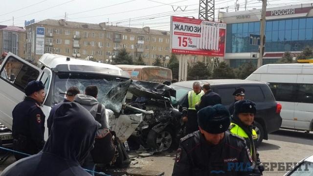 Сегодня, 19 апреля в Махачкале бронированный джип Тойота Ленд Крузер врезался в пассажирскую Газель, есть пострадавшие.